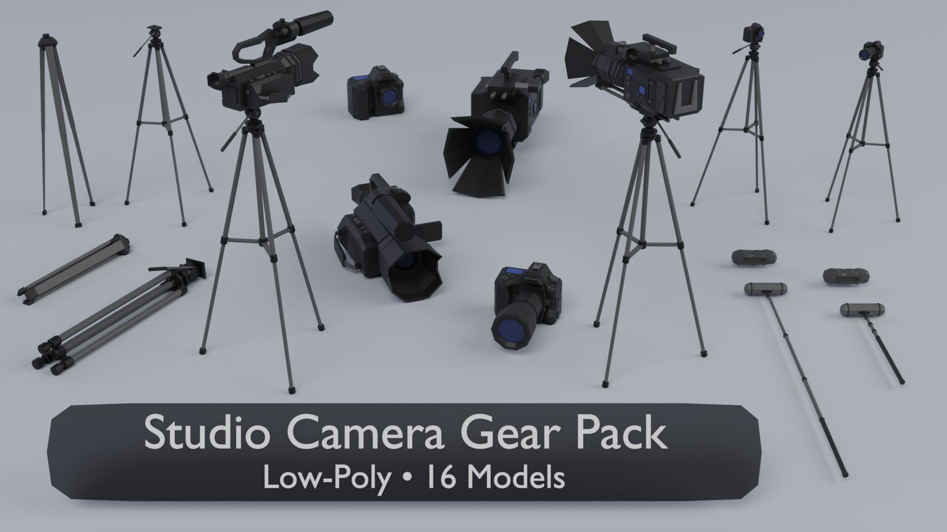 STUDIO CAMERA GEAR PACK — 16 stylized low-poly models
